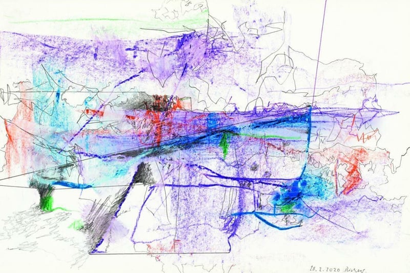 Von Nahem sind es Abstraktionen von Eindrücken, Explosionen und Emotionen. Von Weitem scheinen sich Horizontlinien von Landschaften auf zu tun. Dem Landschaftsmotiv ist Richter sein Leben lang treu geblieben. In den Querformaten spiegeln sich sowohl Konzentration als auch Irritation. Woher Letzteres rührt muss offenbleiben. Vielleicht vom ersten Lockdown und den zwei Monaten davor, als das Sars-CoV-2-Virus schon die Weltnachrichten beherrschte?