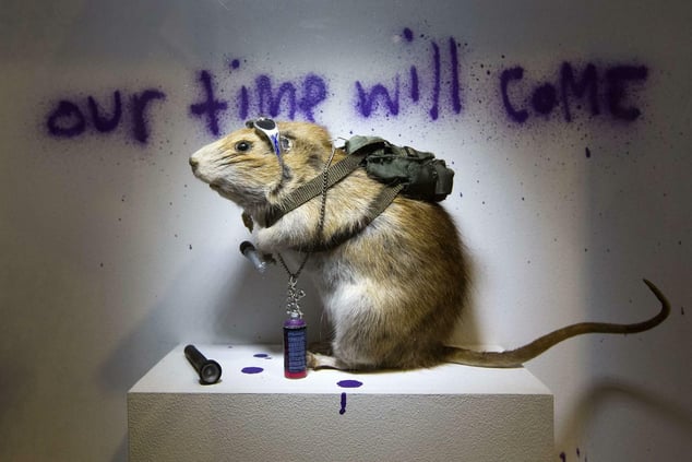 Der britische Graffiti-Künstler Banksy sorgt mit seiner Straßenkunst weltweit für Begeisterung – nur nicht bei der Straßenreinigung von Melbourne. Sie übermalte 2010 das Bild einer Fallschirm springenden Ratte an einer Hauswand.