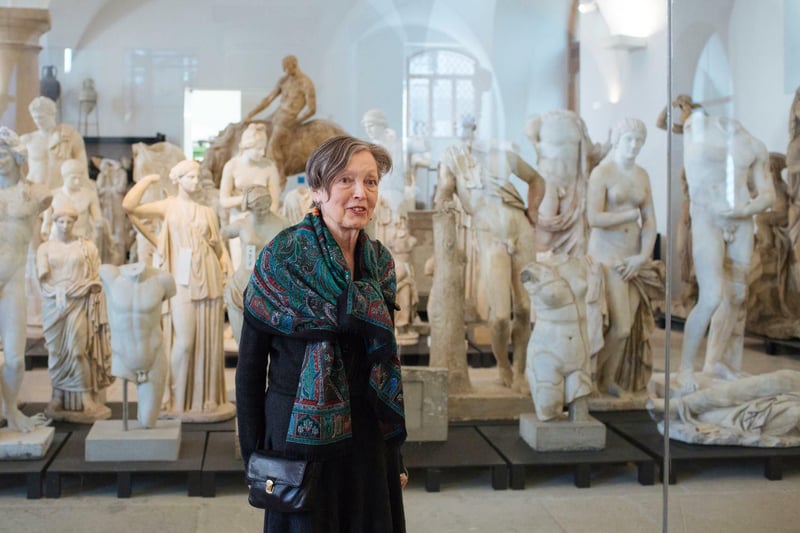 2018 schenkte sie ihre Kollektion den Staatlichen Museen von Dresden. Hier steht sie vor Antiken im „Gläsernen Depot“ des Albertinums.