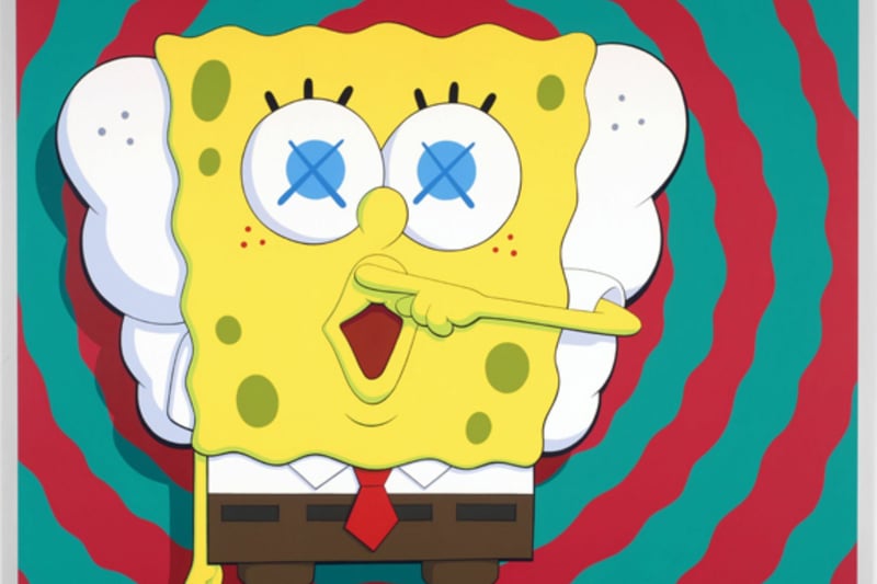 Auch bei KAWS“ frühen Studiogemälden spielten Cartoon-Berühmtheiten die Hauptrollen, seien es die Simpsons, Schlümpfe, Sesamstraße oder SpongeBob Schwammkopf: „Ich beginne mit Vertrautem, vor allem um das Werk zugänglich zu machen – es ist ein Einstieg“, sagt KAWS.