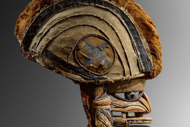 Brüssel. Hauptwerk am Stand von Serge Schoffel, einem Händler für traditionelle Kunst aus Afrika und Ozeanien, ist eine Maske aus Holz, die bunte Vogelfedern imitiert. Das filigran geschnitzte Ritualobjekt aus Neu-Irland mit den typischen Glasaugen stammt aus der Sammlung Minkoff in Genf. Für diese „Tatanua“-Maske erwartet der Händler auf der Messe „Brafa“ 60.000 Euro.