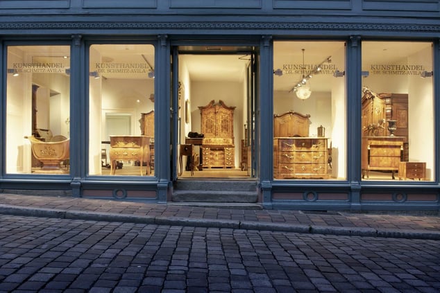 Bei Kaffee und Kuchen im Stammsitz betont der Senior sein Bauchgefühl beim Kauf. Es dürfte indes auch viel Erfahrung dabei sein. Schließlich erwarb der Sohn eines Zahnarztes und einer Antiquitätenhändlerin schon mit 13 Jahren seinen ersten Stuhl. Thomas Schmitz-Avila liebt barocke Dielenschränke und Aufsatzsekretäre, die mit Raffinesse alle Register der Prachtentfaltung ziehen, wie schöne Frauen.