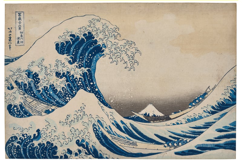 Der weltberühmte Farbholzschnitt „Große Welle“ kam in New York von 500.000 auf die Rekordsumme von 2,8 Millionen Dollar. Sechs Bieter kämpften um den brillanten Abdruck. Quelle. Christie’s