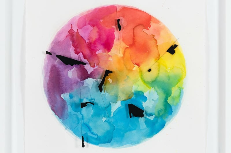 Der Künstler verarbeitete für diese 2019 entstandene Collage Aquarellfarbe, Mylarfolie, archivalische Tinte und Papier. Zu finden ist die Arbeit auf dem Stand von Gregor Podnar, Aussteller der Artissima.