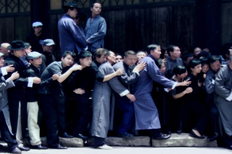 Zu den leiseren, nicht minder eindrucksvollen Arbeiten gehört eine Videoprojektion in Endlosschleife, die sich auf ein krisenhaftes Ereignis von 1948 bezieht. „Re-Run“ (2013) ist die Re-Inszenierung eines Fotos, das Henri Cartier-Bresson von einer Menschenschlange machte, die aus Angst um ihre Ersparnisse eine der Banken Schanghais stürmte; eine Parabel auf die Erwartung der Zukunft, die in der Gegenwart die Voraussetzung für das Eintreffen jener erwarteten Zukunft, nämlich einer Bankenkrise, schafft.