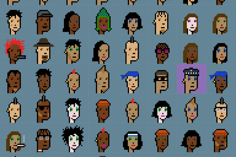 Die 104 CryptoPunks gehören zu insgesamt 10.000 grob gepixelten Köpfchen mit unterschiedlichen, von der Punkbewegung angeregten Attributen. Entwickelt hat sie das kanadische Duo Larva Labs im Juni 2017 mittels eines Algorithmus. Sie gehören heute zu den teuersten und meistgesuchten NFTs. Im Juni 2021 hatte ein einziger „Alien”-Punk bei Sotheby’s 11,75 Millionen Dollar erzielt.