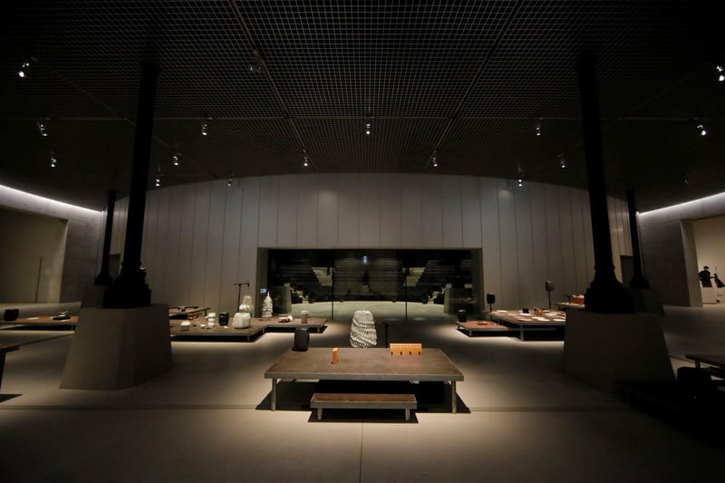 Tadao Andos eingebauter monumentaler, offener Betonzylinder beeindruckt und sorgt doch für Unübersichtlichkeit. Von der Rundwand führen Treppen in zwei Stockwerke und ins Untergeschoss zum Auditorium. Gleich im Eingangsbereich ließ der sonst Minimalismus liebende Sammler ein figuratives großformatiges Gemälde seines Schützlings Martial Raysse installieren.
