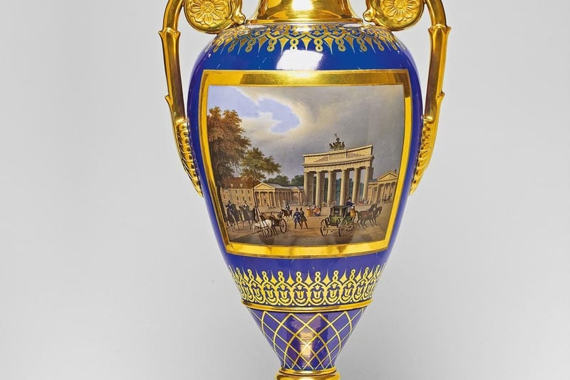 Teures Paradestück war eine 1837 entstandene Vase mit Rosettenhenkeln und zwei Berliner Ansichten. Sie war mit großer Sicherheit die größte und teuerste Vase eines heute verlorenen Dreiersatzes, der als repräsentatives Geschenk Eindruck machen sollte. In einer früheren Auktion zurückgegangen, wurde das Prachtstück jetzt von einem Berliner Sammler für 66.000 Euro zum Dreifachen des Schätzpreises ersteigert.