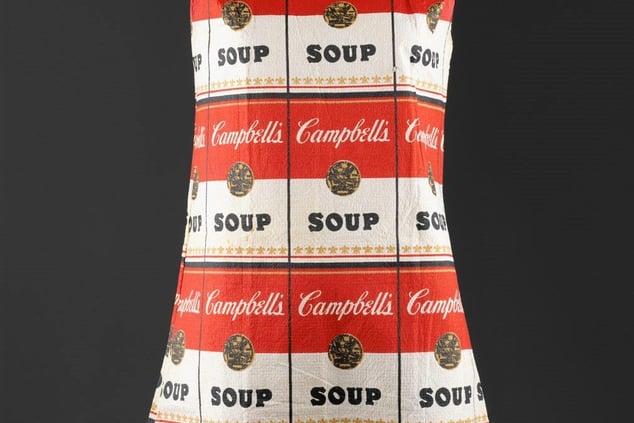 Die Frühzeit des überragend wichtigen Pop-Artisten wird mit weiteren handkolorierten Arbeiten aus den 1950er-Jahren ausgeleuchtet (bis 26.10.). Die Preise liegen zwischen 7200 und 14.500 Euro. Herrlich verspielt und zu schön zum Tragen ist der „Souper Dress“ von 1966/67: ein Damenkleid, auf dessen Stoff fortlaufend die berühmten Dosenetiketten von Campbell Soup gedruckt sind. Zu haben für 9800 Euro.