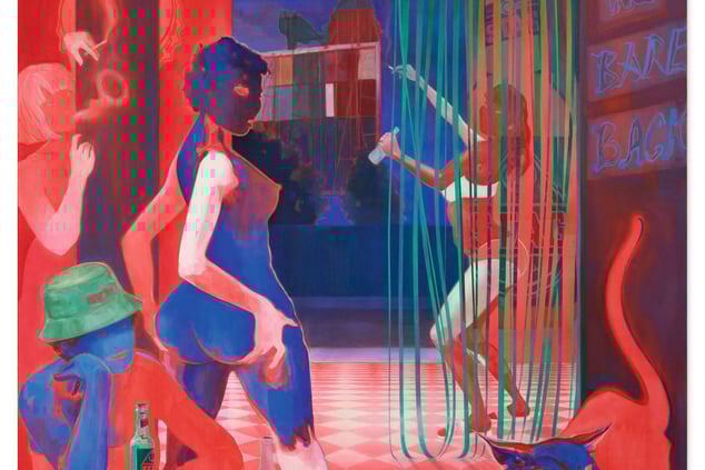 Für das Großformat „No Bare Back, after Embah“ (2017) wurden höchstens 300.000 Dollar erwartet. Der Bietkampf endete jedoch erst bei 3,2 Millionen Dollar mit Aufgeld (Ausschnitt aus einem Hochformat).