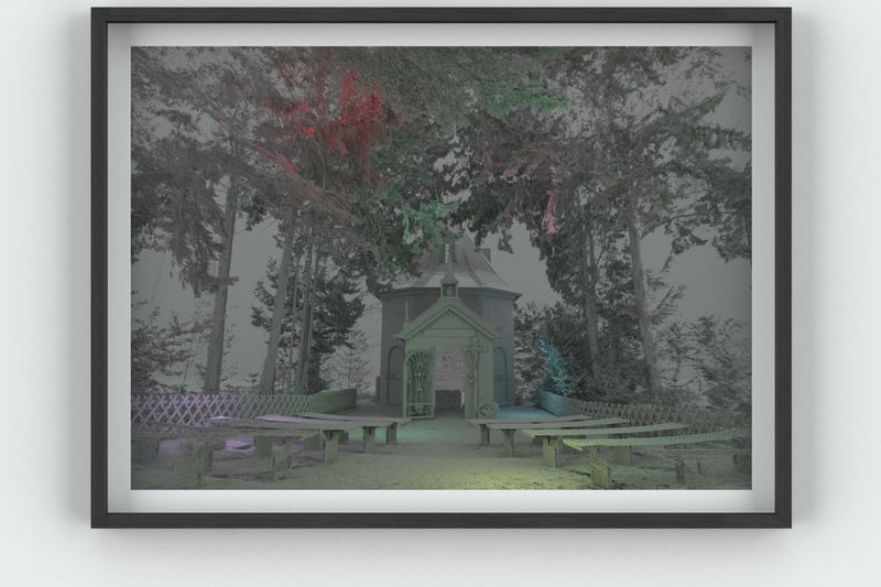 Unter anderem wird in Stuttgart auch das Bild „Pützchen“ zu sehen sein. Es zeigt detailgetreu eine kleine Kapelle im Wald in der Nähe von Aachen. Aber es ist kein Foto, es ist ein Ausschnitt aus einem 3D-Scan.