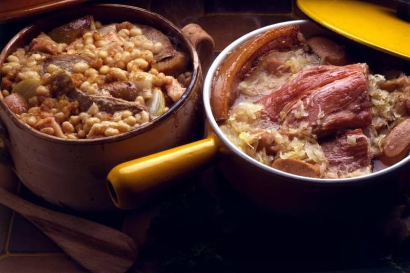 In ein Cassoulet gehören weiße Bohnen, Speck, gepökeltes Schweinefleisch, Würstchen, zudem nach Gusto Lammfleisch sowie Filet und Schlegel von der Gans oder der Ente. In der Toulouser Variante sind eingemachtes (konfiertes) Gänsefleisch, Knoblauch und Kräuter ein Muss.