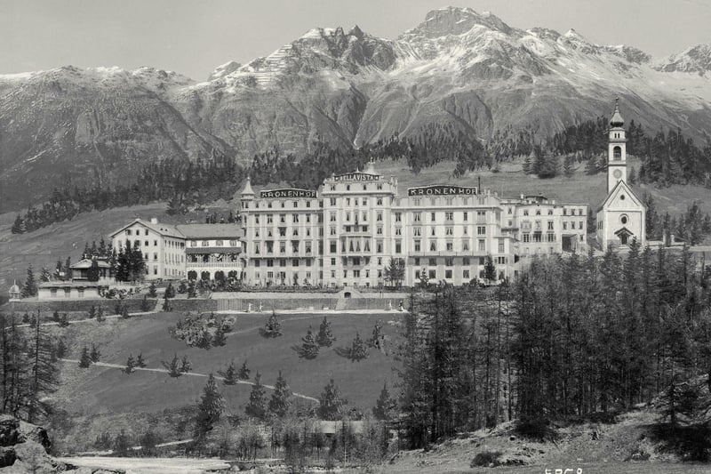 Eine historische Aufnahme des Hotels in Pontresina. Lorenz Gredig hat es 1848 gekauft.