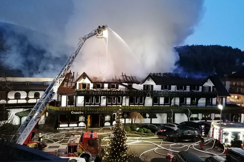 Gäste waren in dem 230 Jahre alten historischen Trakt nicht untergebracht. Das Hauptgebäude des Hotels „Traube Tonbach“, das auf der gegenüberliegenden Straßenseite liegt und in dem 150 Gästezimmer sind, blieb vom Feuer unbehelligt.