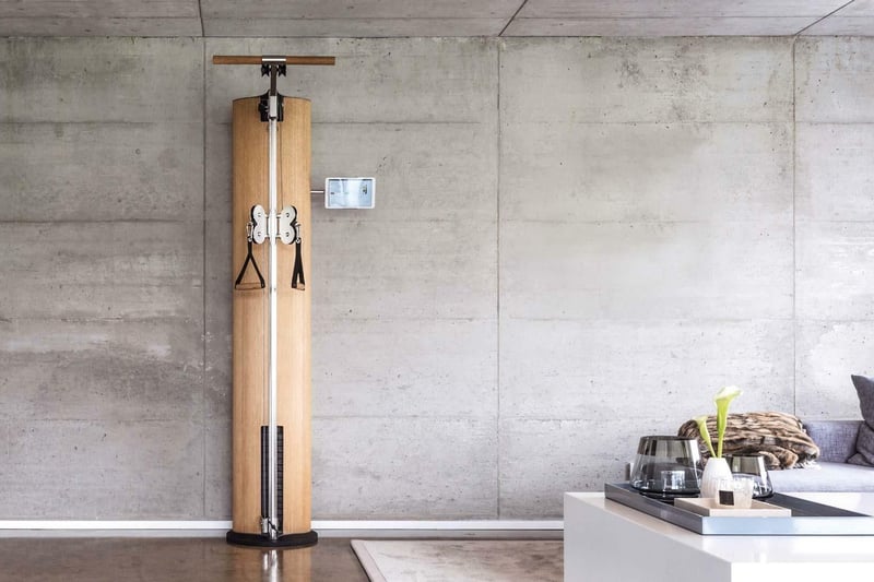 Mit Seilzügen lassen sich Übungen zu allen Muskelgruppen ausführen. Im Gegensatz zu anderen Geräten sind sie besonders schlank. Das 215 Zentimeter hohe und 40 Zentimeter breite Modell „SlimBeam“ von NOHrD wird an die Wand montiert und ragt nur 20 Zentimeter in den Raum hinein.