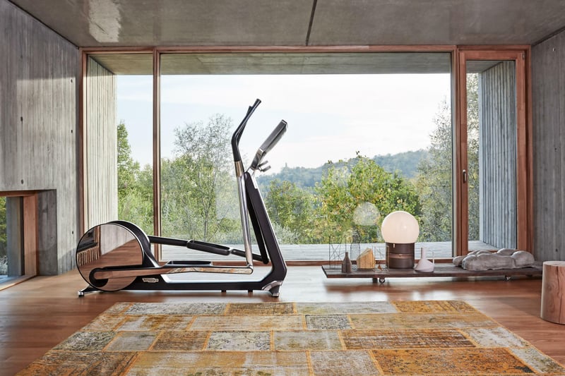 Eine wichtige Rolle fällt hierbei den Materialien zu. Statt sterilem, schwarzem Kunststoff kommen Stahl und Aluminium, aber ebenso auch Holz zum Einsatz. Verspiegelte Oberflächen sind ebenso ein wirkungsvolles Mittel, um Sportgeräte in Chamäleons zu verwandeln: Sie passen sich den Farben, Oberflächen und Formen der häuslichen Umgebung an, indem sie sie reflektieren. Selbst Marmor – die schwergewichtige Lieblingszutat im gegenwärtigen Möbeldesign – kann zur sportlichen Ertüchtigung verwendet werden.