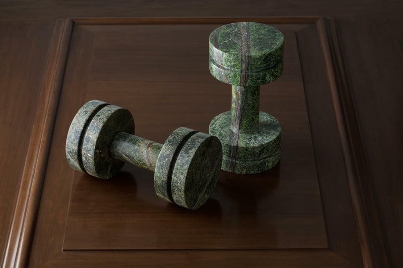 „Rock“ heißt eine aus grünem Marmor gefertigte Accessoire-Serie, die Schalen, Teller, verschiedene Kerzenhalter und eine steinerne Hantel umfasst: ein Objekt, das nicht nur für sportliche Übungen zum Einsatz kommen kann, sondern ebenso als Briefbeschwerer oder Skulptur. „Sie ist ein funktionales Artefakt“, bringt Tom Dixon das Wesen seines Entwurfs auf den Punkt. Preis: ca. 190 Euro.