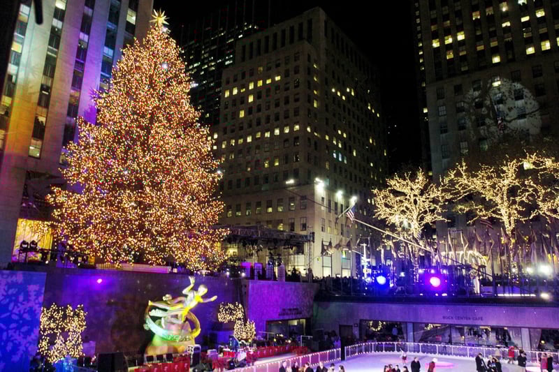 Und was wäre New York ohne den legendären Tannenbaum am Rockefeller Center? 30 Meter hoch, geschmückt mit 30.000 Lichtern – neuerdings umweltfreundliche LEDs. Die Eröffnung am 30.11.2011 ist ein Spektakel. Sogar im Fernsehen wird die sogenannte Tree Lightening Ceremony übertragen.