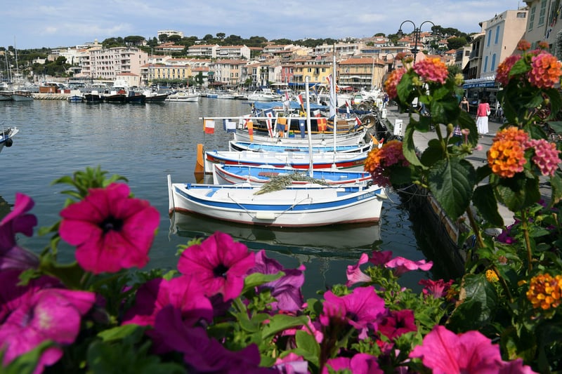 Boote liegen im Hafen von Cassis (Frankreich) am Mittelmeer. Der französische Ferienort liegt an der Côte d´Azur bei Marseille.
