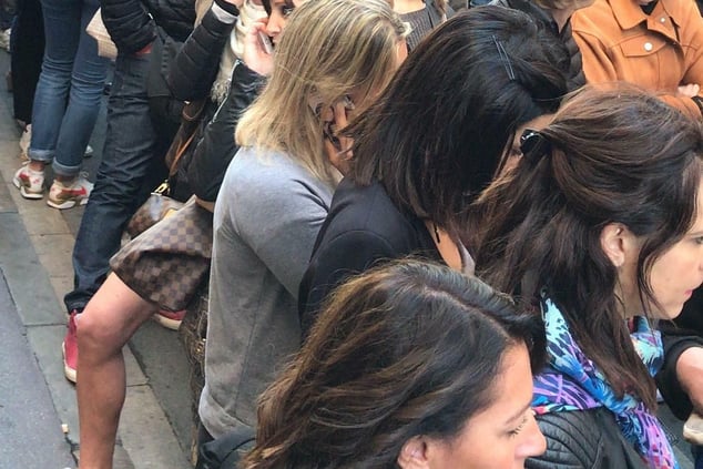 Weiter geht es im Inneren der Geschäfte, durch die sich in diesen vier tollen Tagen Menschentrauben schieben. Vor den Stores besonders angesagter Marken, zum Beispiel dem französischen Modelabel Ba&sh in der Rue Général Allard, bilden sich regelmäßig lange Schlangen, immer nur eine bestimmte Anzahl von Personen wird zugleich in das Geschäft eingelassen.