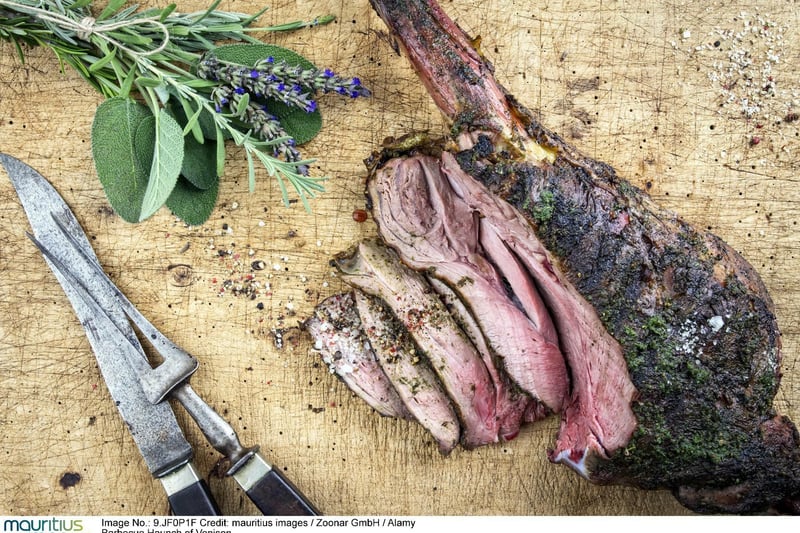 „Selbst die komplette Keule lässt sich rosa servieren. Dafür muss man sie hohl auslösen, also den Knochen mit einem spitzen Messer vorsichtig entfernen, ohne das Fleisch zu sehr zu zerschneiden. Anschließend wird die Keule wie ein Rollbraten gebunden, in der Pfanne oder in der Kasserolle angebraten und bei mindestens 120 bis 130 Grad Ober- und Unterhitze im Ofen gegart, bis die Kerntemperatur 52 Grad beträgt – am besten auf einem Gitter, damit die Wärme gleichmäßig einwirken kann.
