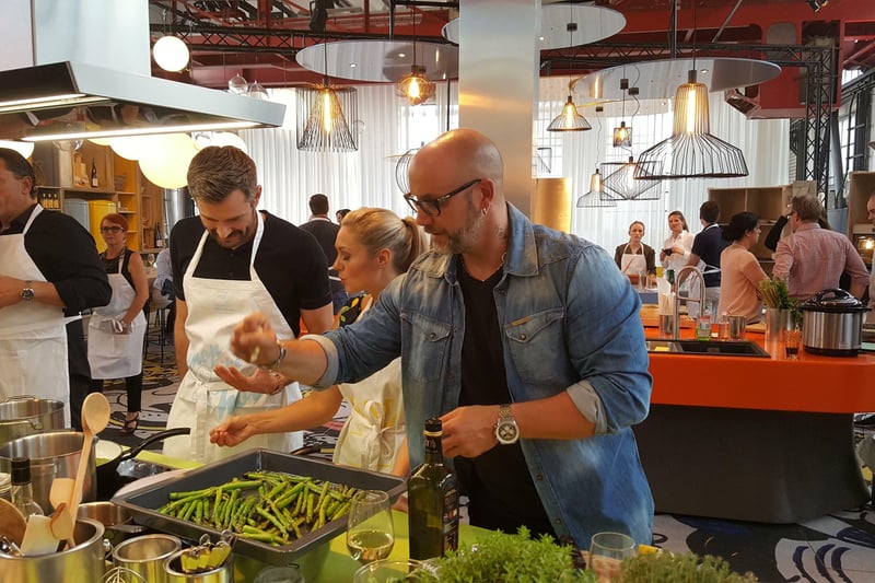 René Schudel steht am Herd. Das macht er eigentlich täglich, denn er ist Koch, und das sowohl aus Leidenschaft als auch mit Erfolg. Nur in Düsseldorf schwingt der Schweizer eher selten den Kochlöffel. Schudel ist an diesem Abend jedoch in Firmenauftrag unterwegs. Zusammen mit dem Küchenhersteller Franke brät, backt und zündelt er in einem Pop-Up-Küchenstudio in einer Eventlocation - in erster Linie, um deutsche Geschäftspartner vom Sortiment zu überzeugen. Für das Schweizer Traditionsunternehmen Franke geht es um die Produktpräsentation, für den Koch um die Message dahinter: Jeder kann kochen.
