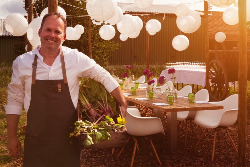 Aus der Scholle direkt in die Küche: Der Sternekoch bedient sich an Beeten, Sträuchern und Bäumen aus der Nachbarschaft.