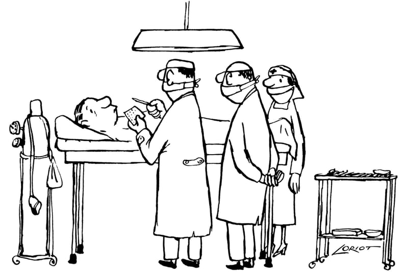 Arztvisite. Drei „Götter in Weiß“ beugen sich über den Patienten und fragen: „Wo tut’s denn weh?“ Sie sprechen behutsam und abgeklärt, werfen sich aber auch sorgenvolle Blicke zu. In ihrer Mappe sind Röntgenbilder und Belastungs-EKGs. Sie vermuten einen Befund, aus dem sich eine Therapie ergeben könnte. „Kopf hoch! Das wird schon. Wir machen Fortschritte.“
