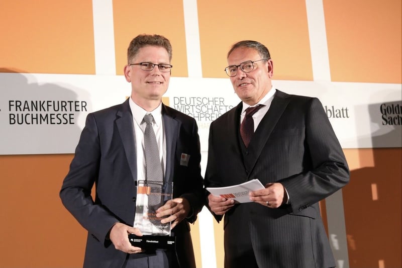 Nach einem Jahr der coronabedingten Pause hatte das Handelsblatt gemeinsam mit seinen Partnern, der Frankfurter Buchmesse und der Investmentbank Goldman Sachs, in den Frankfurter Hof geladen. „Der Deutsche Wirtschaftsbuchpreis hat sich mittlerweile als einer der wichtigsten Literaturpreise in diesem Genre etabliert", sagte Wolfgang Fink, Vorstandschef von Goldman Sachs Europe, an dem Abend. "Alle Wirtschaftsbücher, die im vergangenen Jahr in Deutschland veröffentlicht wurden, spiegeln, dass die Themen Nachhaltigkeit, soziale Verantwortung und gute Unternehmensführung vor dem Hintergrund der Coronakrise mehr denn je im Fokus stehen.“