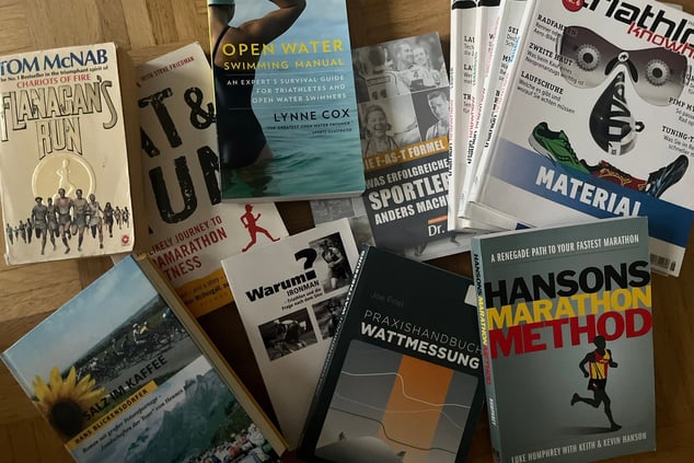 Diäten, eine angebliche Zaubermethode für Marathon, ein Mathematikbuch für Rennradfahrer mit Wattmesser, aber auch Geschichten und Bücher über Freiwasserschwimmen und Ernährung für Läufer – vieles kam noch dazu, aber trotz weiterer Erkenntnisse haben sie nicht den Einfluss auf mich gehabt wie die obigen. Es gibt viele Bücher, aber eben auch viele, die es nicht unbedingt braucht.