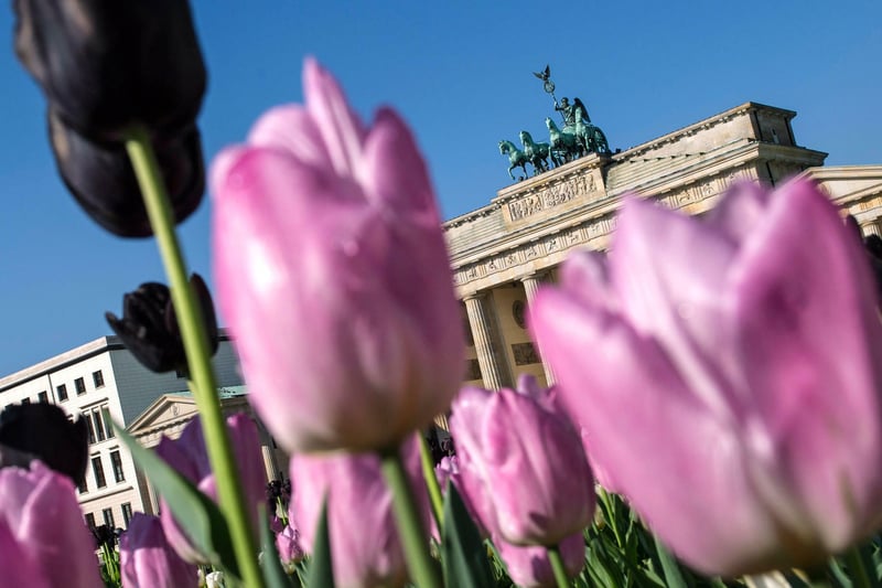 Tulpen auf dem Pariser Platz in Berlin: Im Biervergleich von Goeuro.de ist das Bier in der Bundeshauptstadt am billigsten. 0,71 Euro kostet das Bier im Supermarkt und 3,90 Euro durchschnittlich in der Bar. Ein (fast) unschlagbarer Durchschnittspreis von 2,30 Euro.