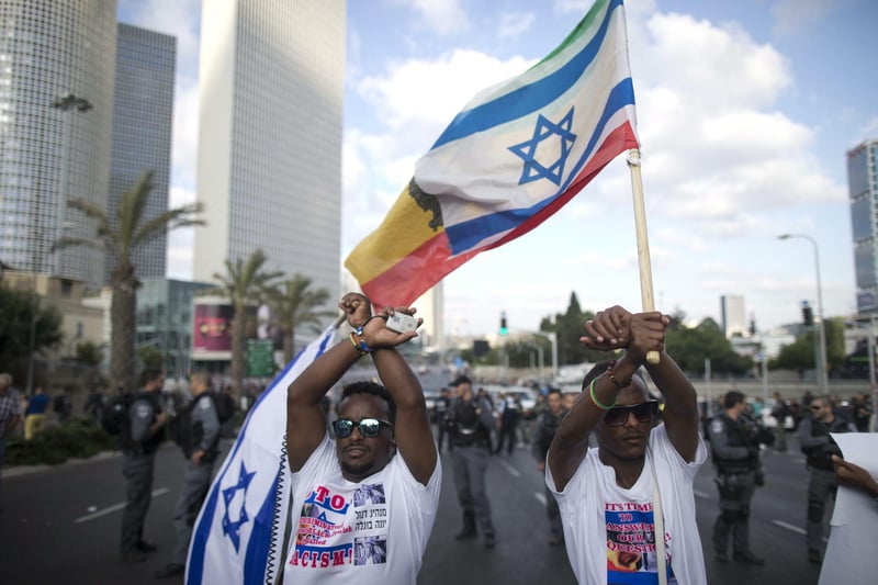 Gebürtigen Äthiopier demonstrieren in Tel Aviv: Allerdings nicht, wie man meinen könnte, gegen die hohen Bierpreise in der Stadt. Mit 1,84 Euro pro Bier ist der Gerstensaft zwar im Supermarkt vergleichsweise günstig, in der Bar kostet das goldene Glück dann aber satte 8,51 Euro.