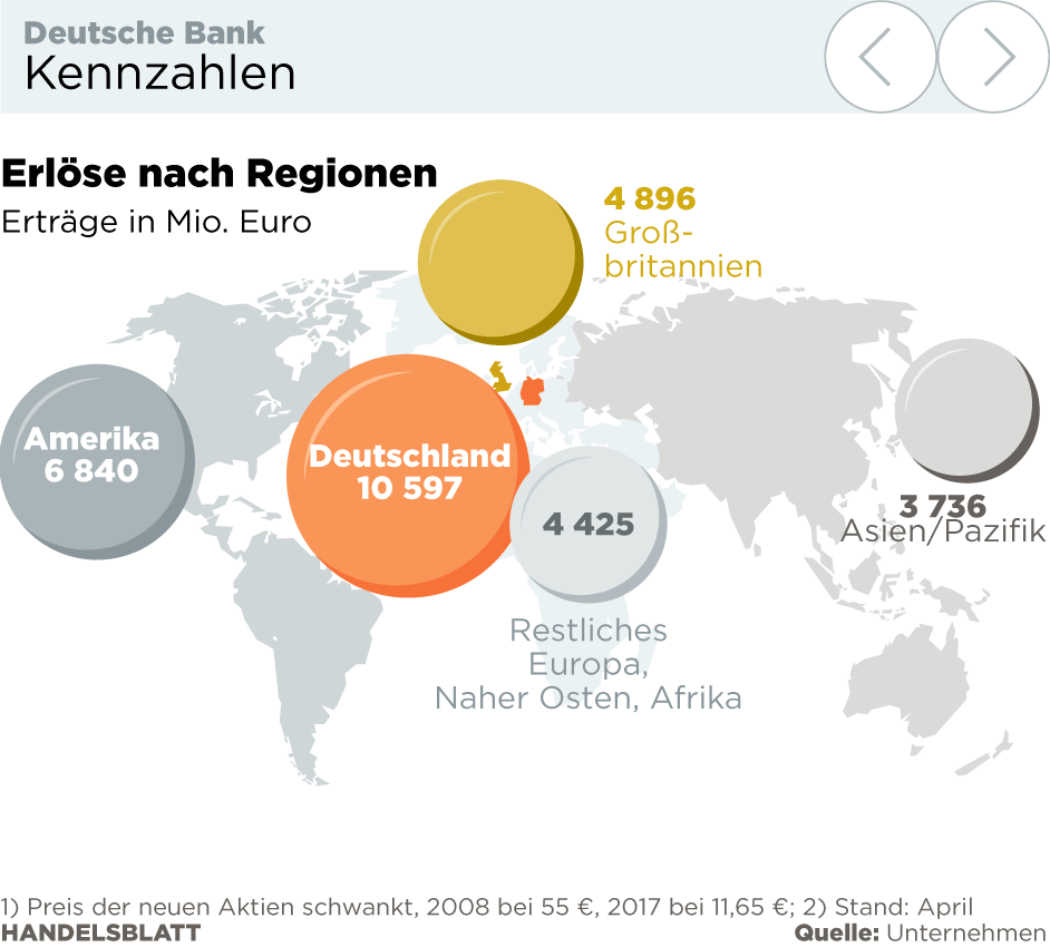 Zu den Überraschungen der neuen Strategie zählt, dass die Bank nun wieder deutlich früher als geplant der Hauptversammlung eine Dividende vorschlägt. Für das Geschäftsjahr 2016 sollen 0,11 Euro je Aktie ausgeschüttet werden, für das Vorjahr nachträglich 0,08 Euro je Aktie. In Summe fließen damit rund 400 Millionen Euro ab. Es mag absurd erscheinen, dass eine wirtschaftlich geschwächte Bank, die gerade via Kapitalerhöhung noch einmal acht Milliarden Euro bei ihren Aktionären einsammeln musste, aus der Substanz eine Dividende zahlt. Doch weil die Bank nach deutschem Bilanzrecht in ihrem AG-Abschluss – nicht im Konzern – einen kleinen Gewinn verbucht hatte, hatte das Landgericht Frankfurt das Institut zur Zahlung einer gesetzlichen Mindestdividende verdonnert. Einige Aktionäre hatten diese Zahlung erstritten.