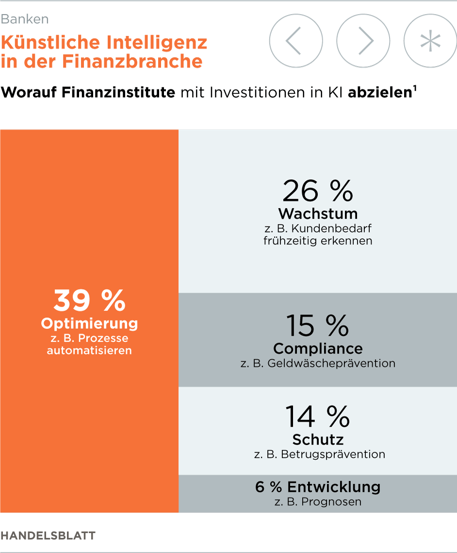 „Alle deutschen Banken schauen auf das Thema“, sagt Marika Lulay, Chefin des IT-Unternehmens GFT, das auf die Finanzbranche spezialisiert ist. Bei einigen gebe es erste Testläufe, während Banken in anderen Ländern bei KI schon weit über die Pilotphase hinaus seien.