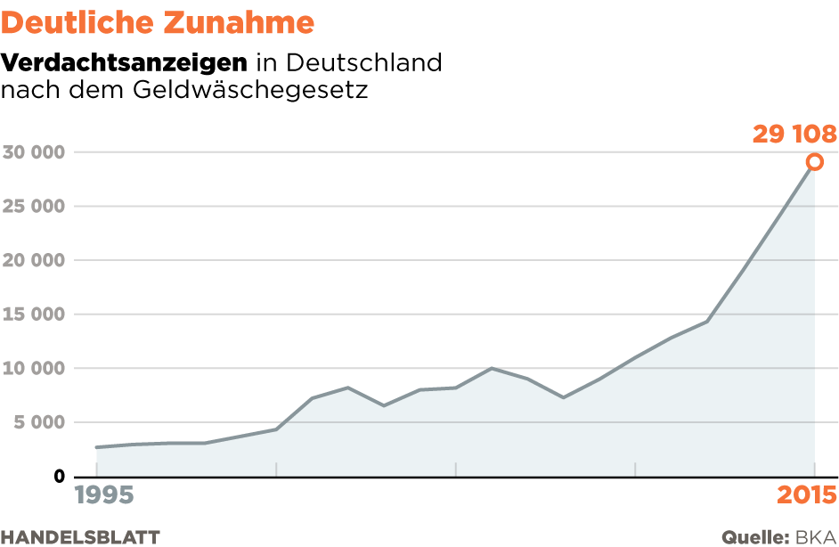 Monatlich wächst der Stapel damit um 6.000 Fälle. Und für deren Erstbewertung, auch im Hinblick auf Terrorverdacht, sind laut FIU derzeit 20 Mitarbeiter zuständig.