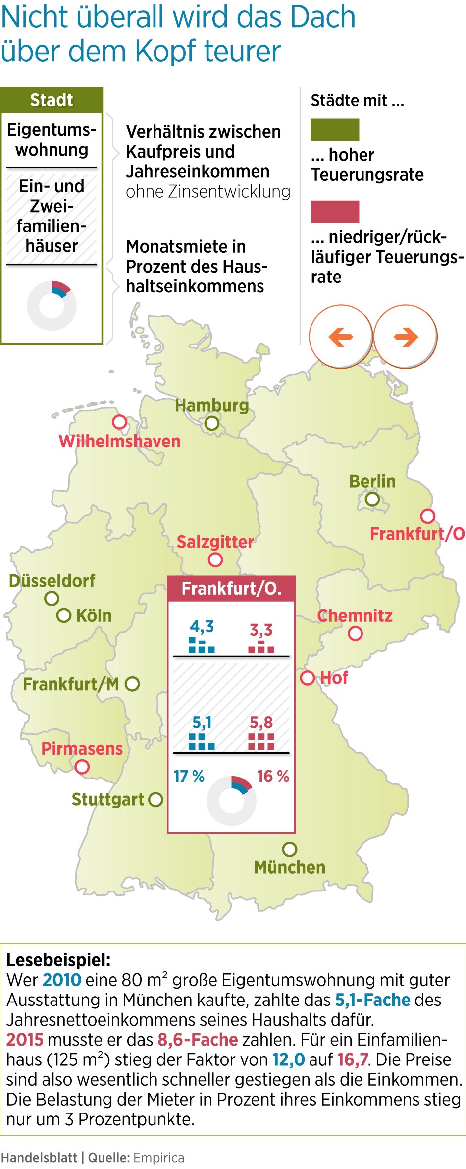 Die ohnehin gut verdienenden Münchener mussten 2015 mehr als das Achteinhalbfache des durchschnittlichen Haushalts-Jahresnettoeinkommen aufbringen, um eine 80 Quadratmeter große Einkommenswohnung zu kaufen, so viel wie in keiner anderen Stadt. Im Schnitt kostet eine Münchener Eigentumswohnung 5 200 Euro pro Quadratmeter. Für Neubauten in mittleren bis guten Lagen sind es gerne auch mal ein bis zwei Tausender mehr.