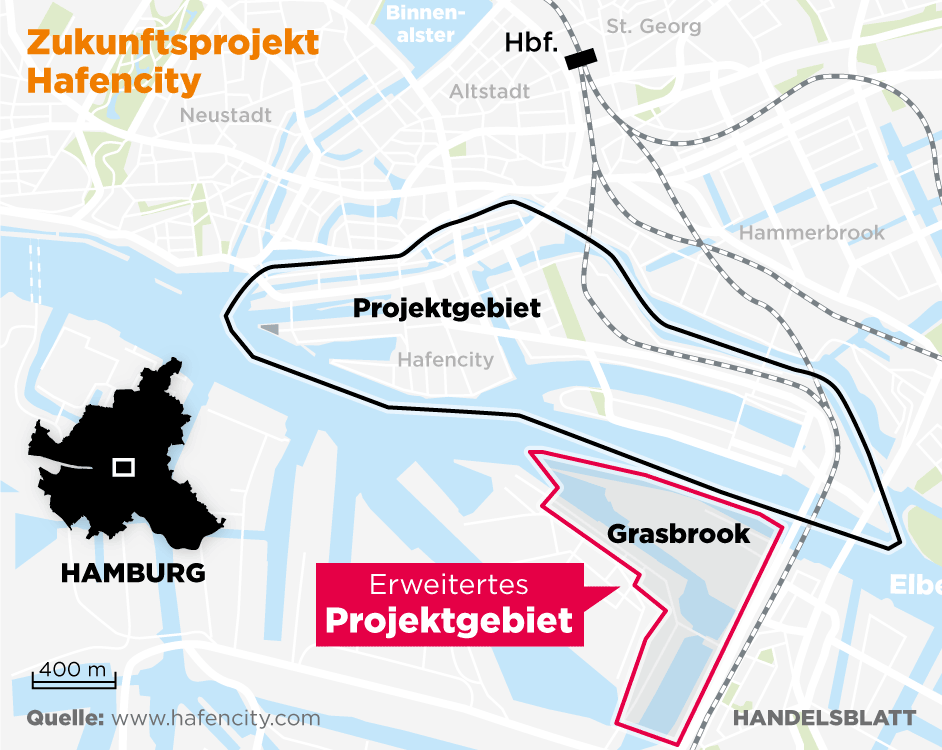 Das heißt: Eines der größten Stadtentwicklungsprojekte Europas, die Hamburger Hafencity, geht in die nächste Runde. Seit dem Jahr 2000 entsteht die Erweiterung der Innenstadt um 40 Prozent auf ehemaligem Hafengebiet. Inzwischen sind fast alle Grundstücke vergeben, die Grundzüge des letzten Bauabschnitts werden sichtbar. Ohne den Sprung auf die Elbinsel Grasbrook wäre das Projekt 2030 fertig – und das Planungsteam schon einige Jahre zuvor arbeitslos.