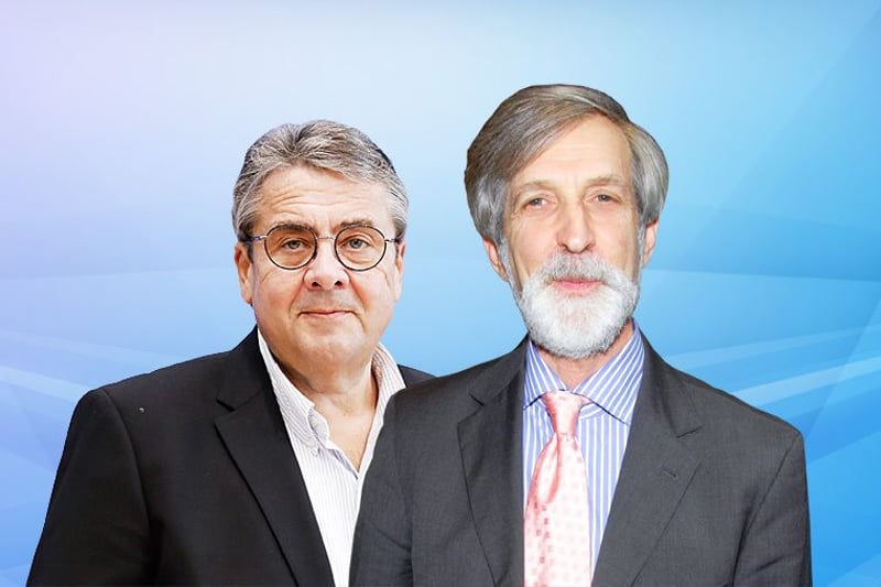 Sigmar Gabriel (li.) ist Publizist und Aufsichtsrat bei der Deutschen Bank und bei Siemens Energy. Er war von 2009 bis 2017 Vorsitzender der SPD und von 2013 bis 2018 Vizekanzler.