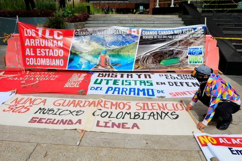 Im Kolumbien demonstrieren Umweltschützer gegen die Klage des Unternehmens.