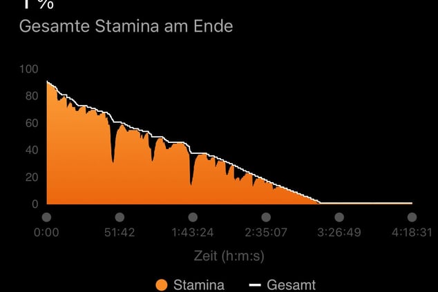 Als geradezu wertlos empfinde ich den bei meiner Uhr eingebauten Wert Stamina, also Durchhaltevermögen. Der sagt mir, wie lange ich die Belastung des Moments durchhalte.
