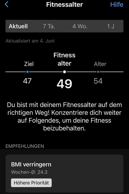 Sehr zuverlässig konnte ich diesen Wert in den roten Bereich unterhalb des Fensters drücken, wenn ich das eine Glas Wein mehr getrunken habe und die Heimfahrt mit einem Wegebier gekrönt habe, sprich deutlich zu viel Alkohol im Spiel war. Schlechter Schlaf, schlechte Erholung, alles schlecht. Spoiler: Das merkte ich auch ganz ohne Uhr.