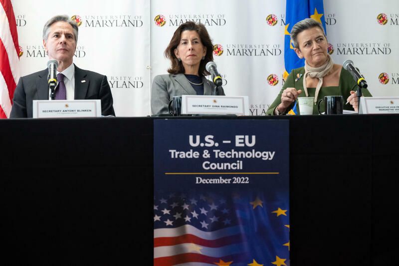 Zumindest nach außen ist die Stimmung zwischen den USA und der EU gut. Beim Treffen des Transatlantischen Rats für Handel und Technologie (TTC) verständigte man sich am Montag auf neue Kooperationen, etwa bei der Sicherung von Lieferketten. „Das Wichtigste ist: Wir stehen zusammen“, so drückte es EU-Kommissionsvizepräsidentin Margrethe Vestager aus.