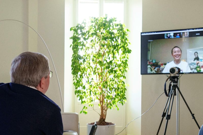 Am Sonntagabend veröffentlichte das IOC einen knappen Beitrag darüber, dass IOC-Chef Thomas Bach und die Vorsitzende der Athletenkommission des IOC, Emma Terho, mit Peng ein 30-minütiges Videogespräch gehabt hätten. Zuvor hatten chinesische Staatsmedien mehrere angeblich aktuelle Videoaufnahmen von Peng verbreitet, die sie in guter Verfassung zeigen sollen. Peng gehe es gut, sie schien „entspannt“ zu sein, gab Terho nach dem Gespräch zu Protokoll.