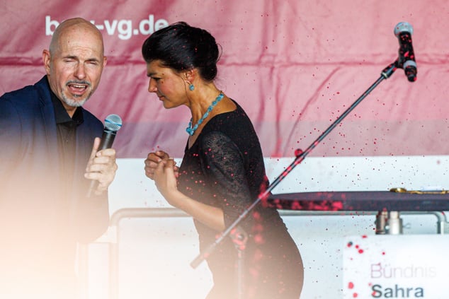 BSW-Gründerin Sahra Wagenknecht hat nach einem Zwischenfall bei einer Wahlkampfveranstaltung in Erfurt kurzzeitig ihren Auftritt unterbrochen. Die 55-Jährige war mit einer roten Flüssigkeit bespritzt worden, ein 50 Jahre alter Tatverdächtiger wurde festgenommen. Nach einer kurzen Unterbrechung setzte die Politikerin ihren Auftritt fort. Auf X schrieb Wagenknecht später: