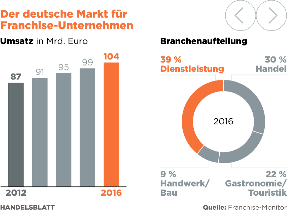 Zugleich aber versuchen jedes Jahr rund 150 neue Franchisesysteme ihr Glück, so dass ihre Zahl in den vergangenen Jahren relativ stabil blieb. Zurzeit gibt es etwa 950 Franchisesysteme in Deutschland, die in 160.000 Partnerbetrieben knapp 700.000 Menschen beschäftigen.