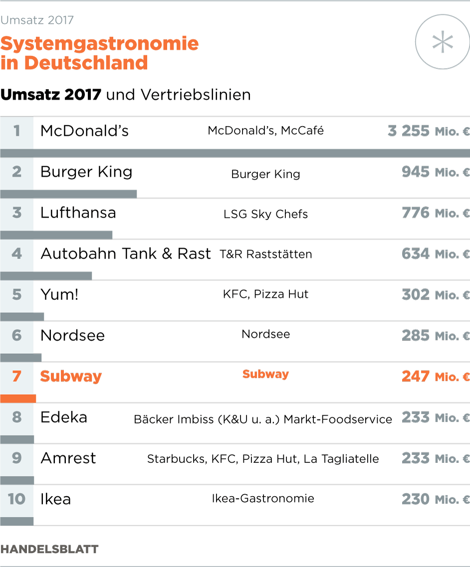 Subway ist kein Einzelfall. Die Systemgastronomie wächst – nicht nur an den Lebensadern der schnelllebigen Gesellschaft, den Flughäfen, Bahnhöfen und Autobahnen, sondern auch in den Innenstädten. Der Einzelhandel in den Städten tut sich schwer in Zeiten der immer stärkeren Konkurrenz durch Amazon und Co., folglich vermieten Immobilieneigentümer und Shoppingmalls liebend gern an die Gastronomie.